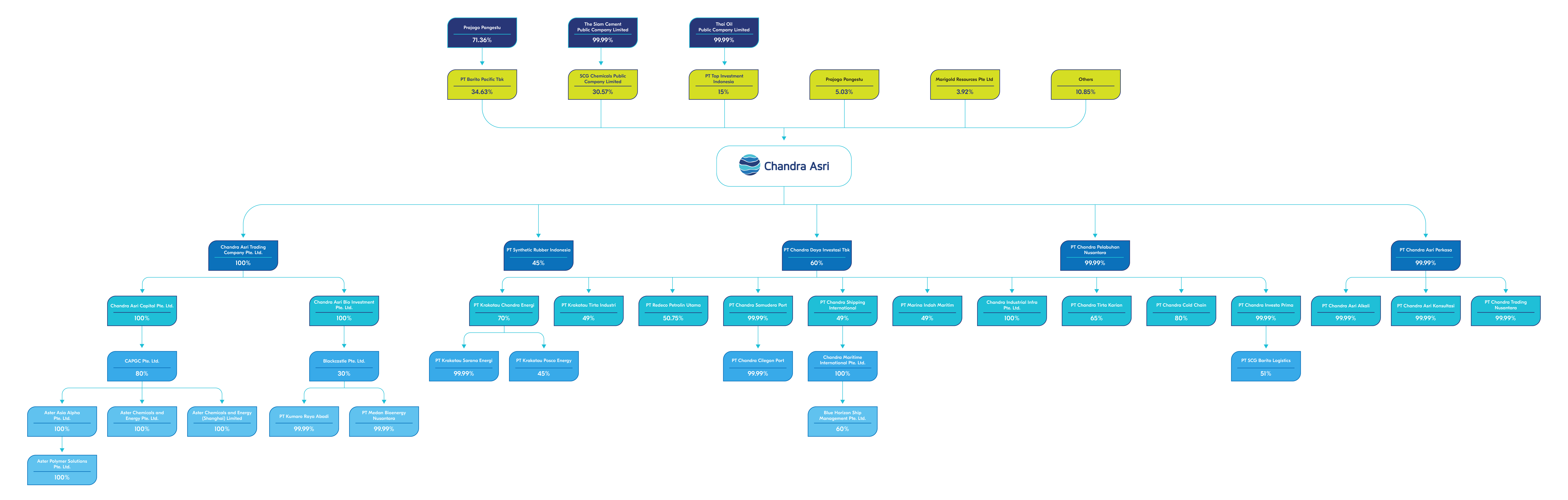 Jajaran pimpinan Chandra Asri Group terdiri dari para profesional berpengalaman dengan latar belakang yang beragam, masing-masing membawa keahlian yang beragam untuk memimpin aksi korporasi yang strategis dan mendorong inovasi. Sementara itu, manajemen kami yang terstruktur dengan baik sangat penting untuk memastikan pengambilan keputusan yang efektif, akuntabilitas yang jelas, dan pelaksanaan inisiatif strategis yang efisien. Semua ini mendorong pertumbuhan kami secara keseluruhan.