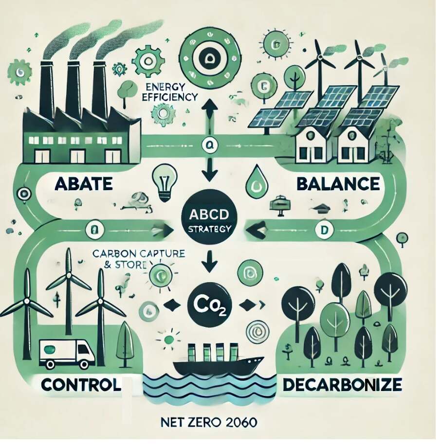 Mencapai net zero adalah tantangan yang kompleks, tetapi kami berkomitmen untuk mencapainya melalui strategi komprehensif yang kami sebut strategi ABCD: