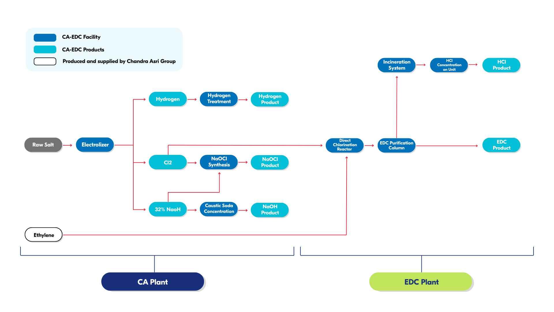 Chandra Asri Group is Indonesia's leading chemicals company, operating the country’s largest integrated petrochemical complex. We continue to grow organically through projects like the CA-EDC plant, which supports the EV ecosystem and key industries by producing caustic soda and ethylene dichloride.